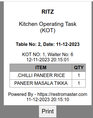 Automated KOT Generation System
